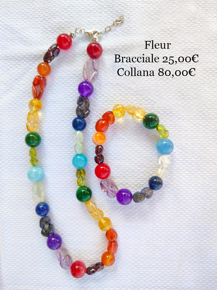 Le misure della collana e del bracciale sono personalizzabili. Tutti i gioielli arcobaleno hanno ganci e chiusure in argento rodiato anallergico.